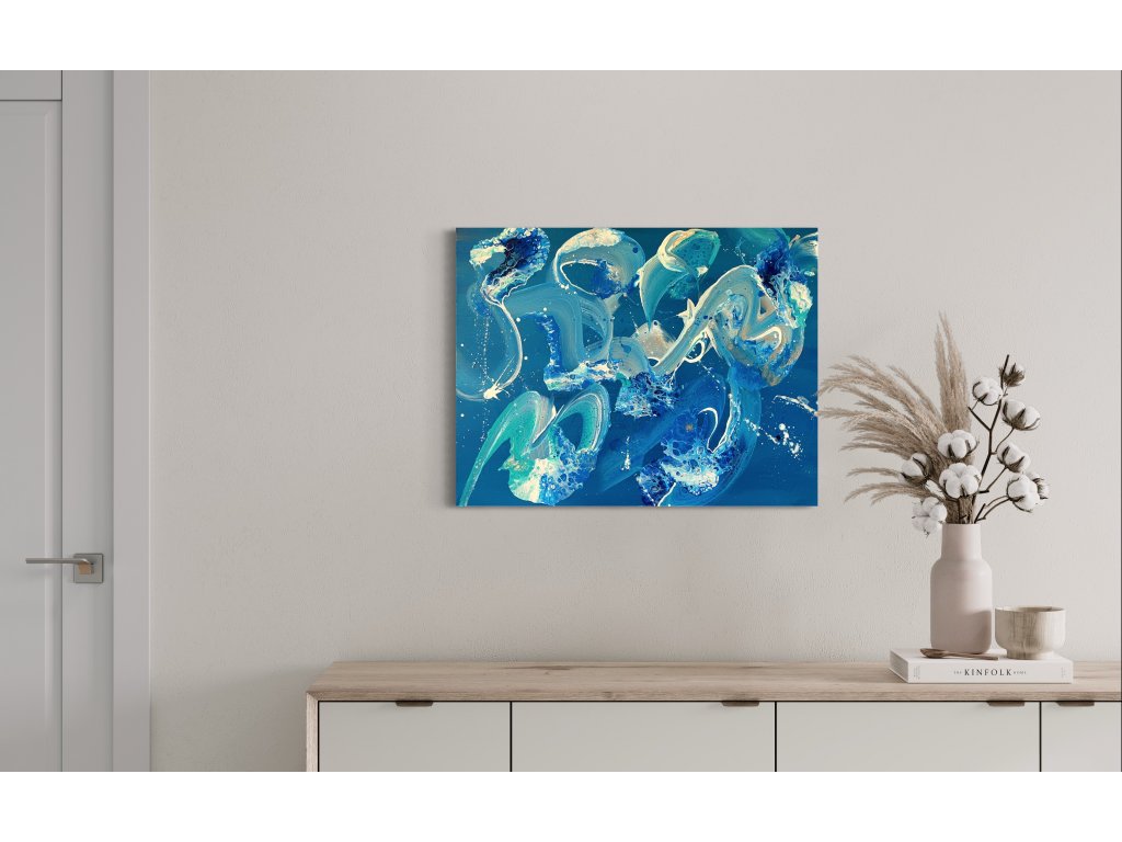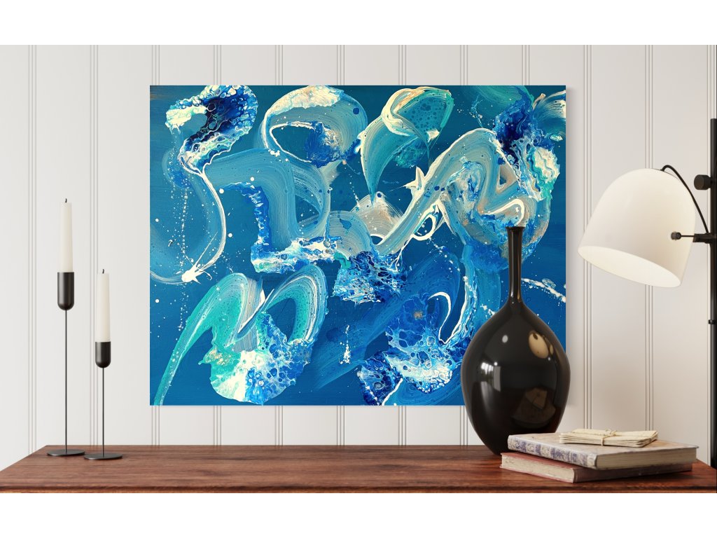 Nespoutané vlny, barevnost a síla oceánu, přesně takový je abstraktní malovaný obraz OCEAN. Hodí se do každé místnosti, do které chcete vnést příval pozitivní energie a spokojenosti.
